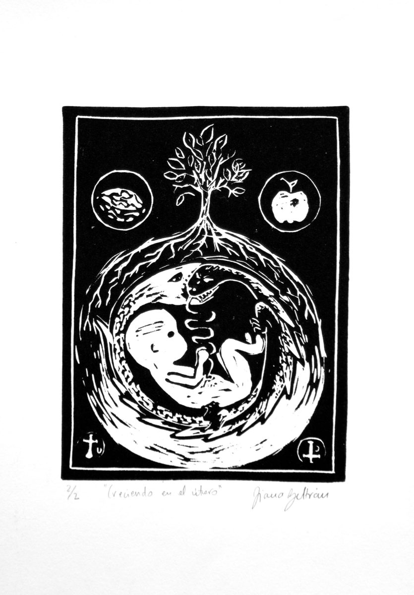 Gran parte de las imágenes abordan instantes asociados a la maternidad, un tema que aparece no desde el deseo, sino desde el rechazo consciente a ser madre. Los grabados no buscan idealizar ni romantizar este imaginario; por el contrario, presentan escenas crudas, incómodas y a veces violentas, que ponen en evidencia el peso simbólico, social y corporal que se impone sobre el cuerpo femenino. La serialidad acentúa esta sensación de imposición, como si la imagen insistiera una y otra vez sobre un destino que no se elige.